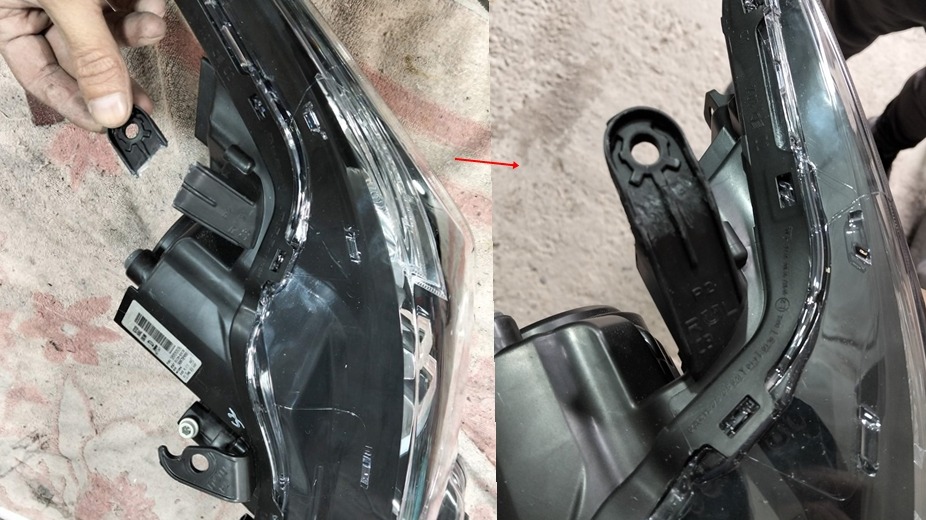 Реальные примеры фар, бамперов, крышек и других деталей с полностью восстановленными креплениями, выполненными методом профессиональной сварки пластика.